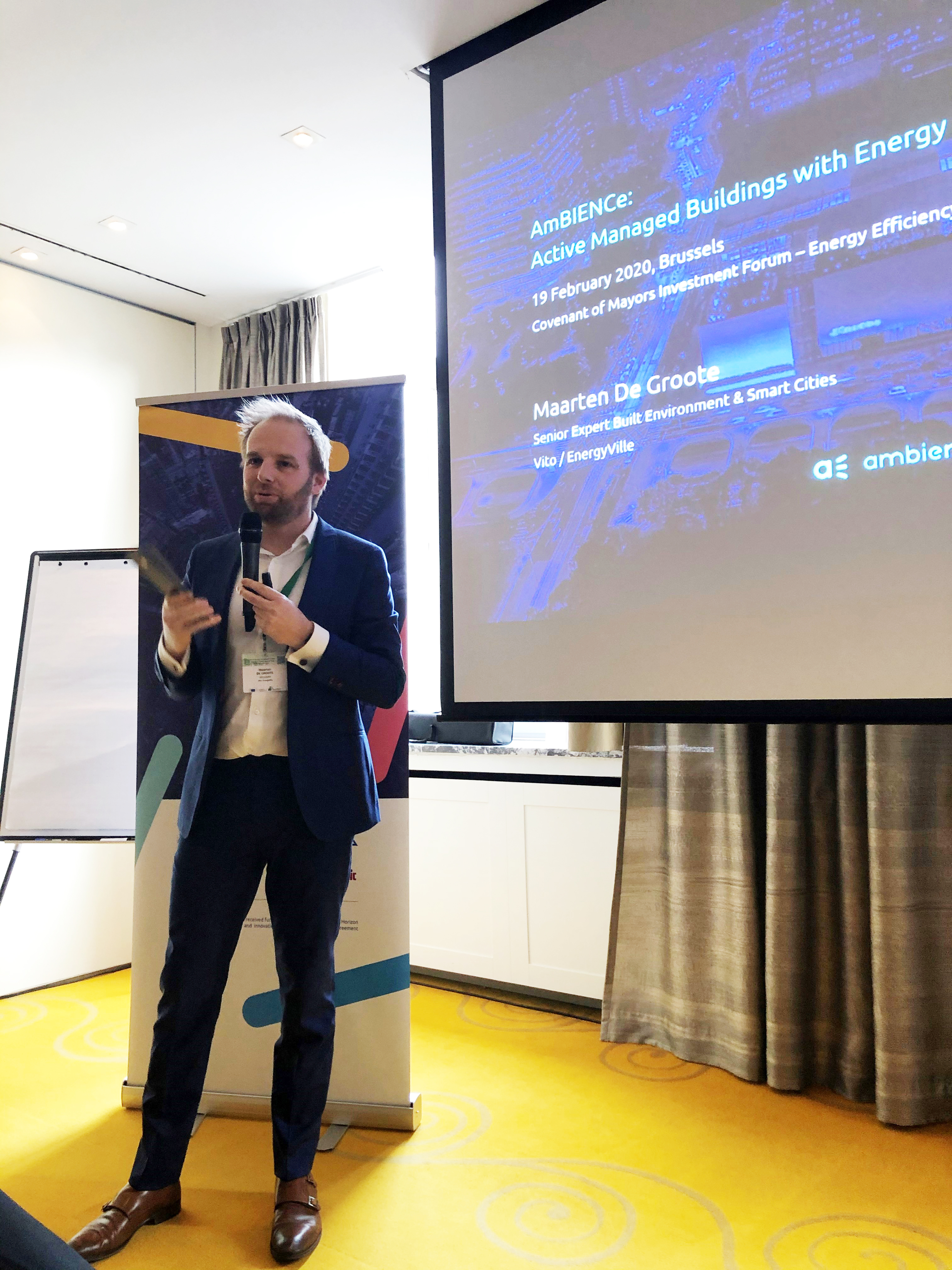 On 18th and 19th February, Maarten De Groote (VITO) and Lieven Vanstraelen (Energinvest) were in Brussels, Belgium, presenting AmBIENCe project, its objectives and approach at the Covenant of Mayors Investment Forum – Energy Efficiency Finance Market Place.